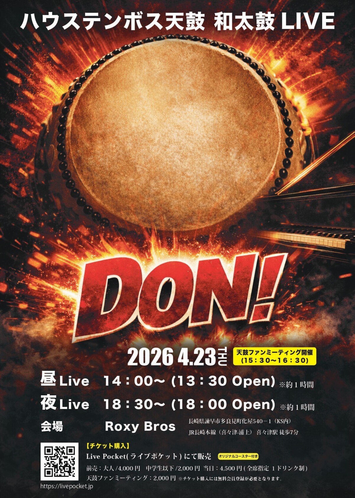 前売 : 大人/4,000円 中学生以下/2,000円